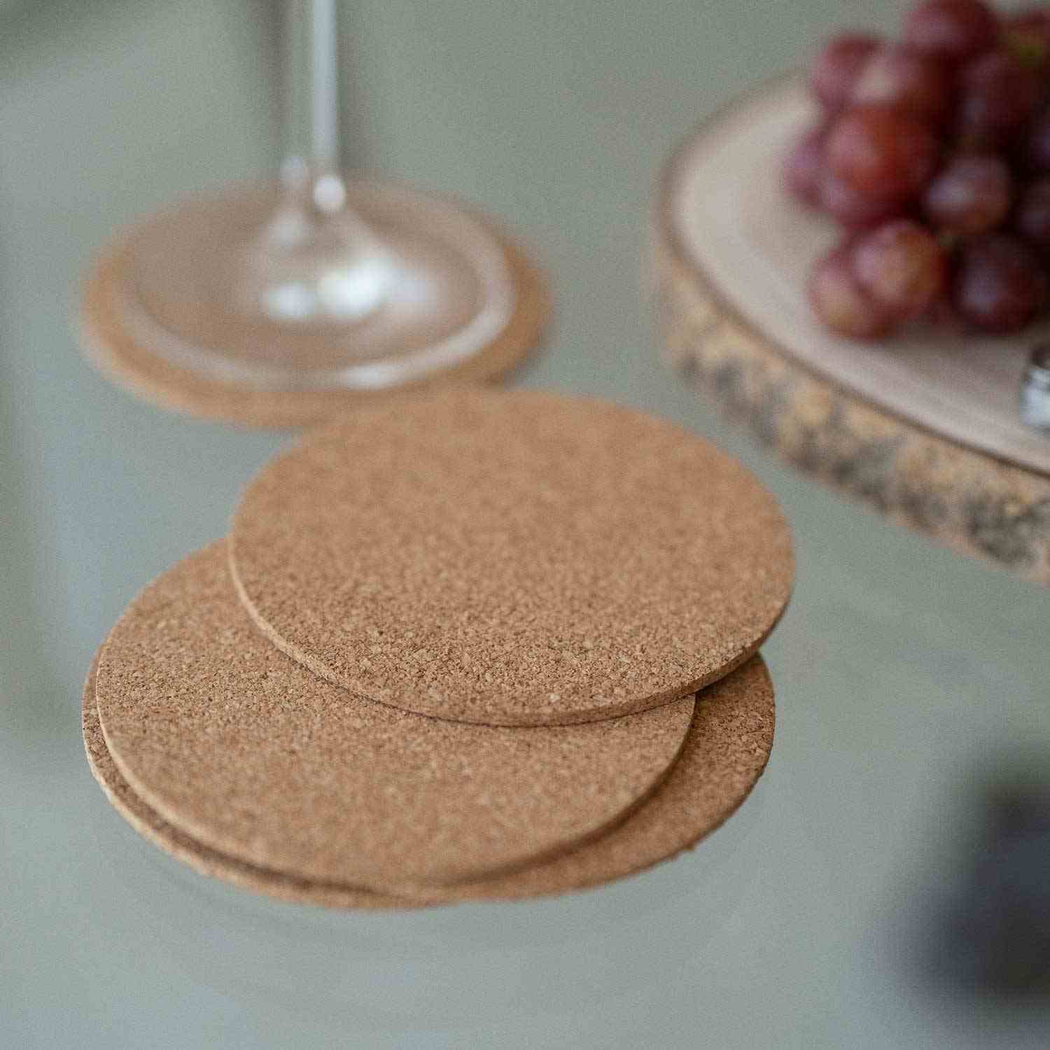 Pack de 8 posavasos de corcho 100% natural y ecológico. Alta capacidad absorción y antiderrame de líquidos.