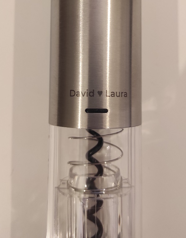 Sacacorchos eléctrico personalizado para una boda. muy bien