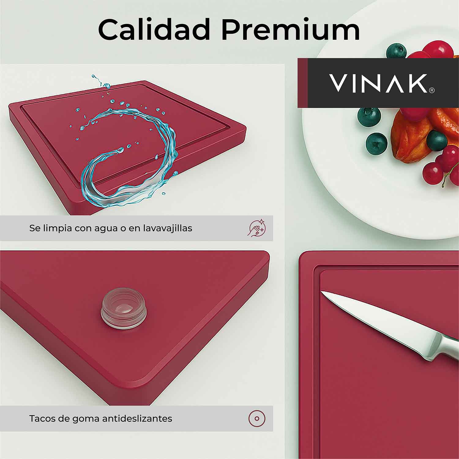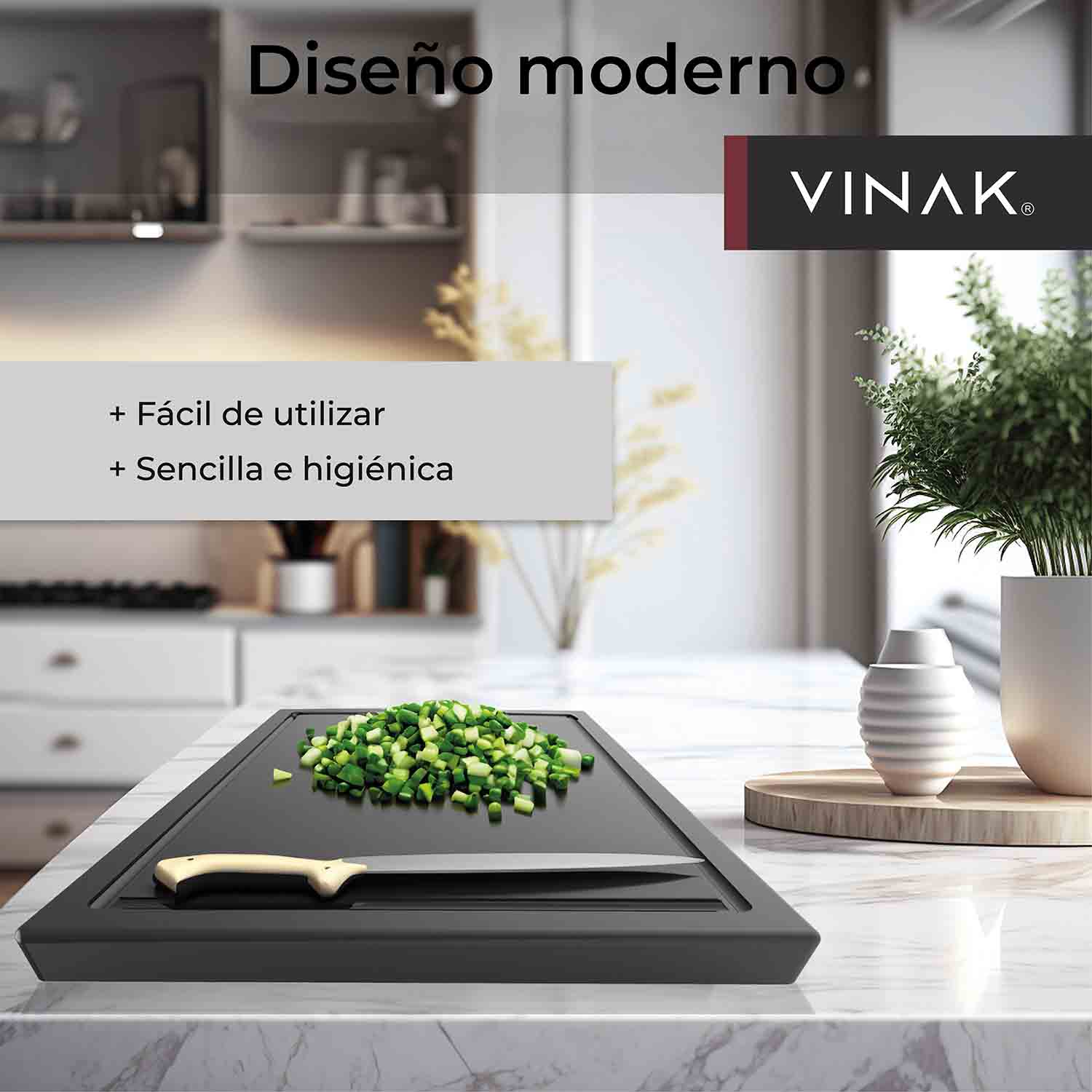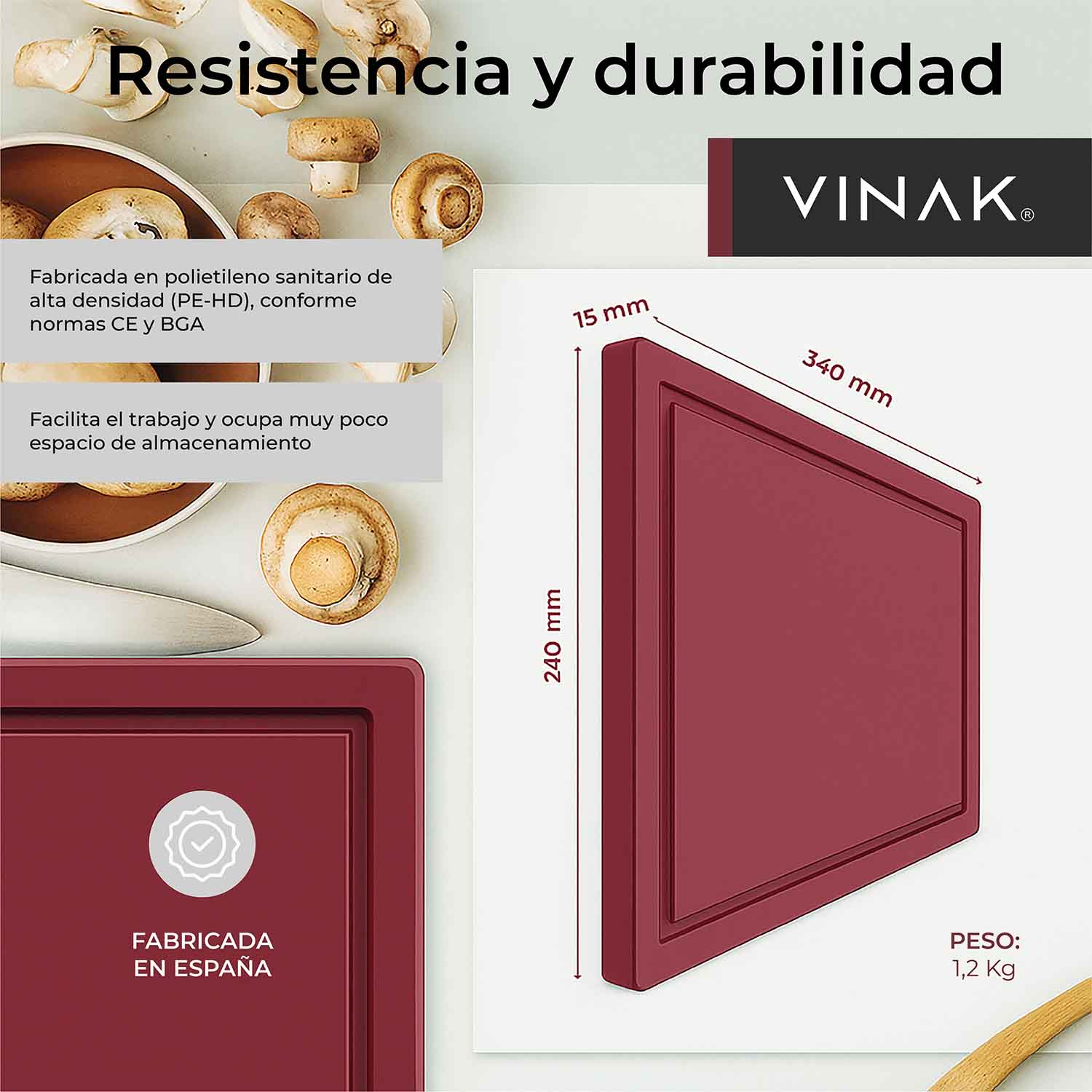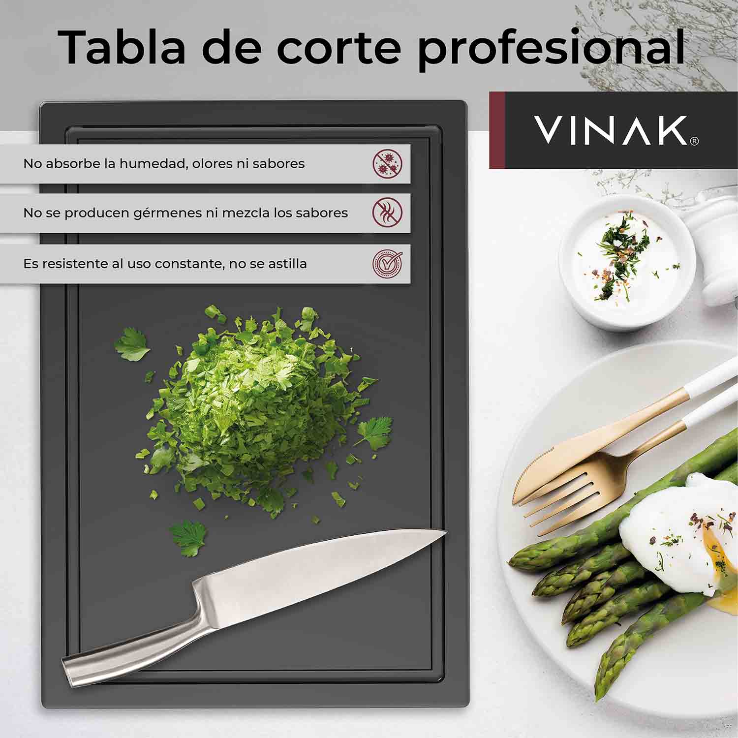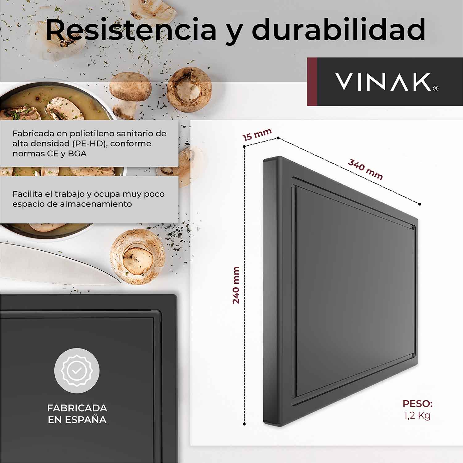 - Dimensiones ideales (tamaño de 340 x 240 x 15 mm y peso de 1,2 kg) para un manejo cómodo y estable, permitiendo cortar todo tipo de alimentos con precisión en esta tabla de cortar profesional.